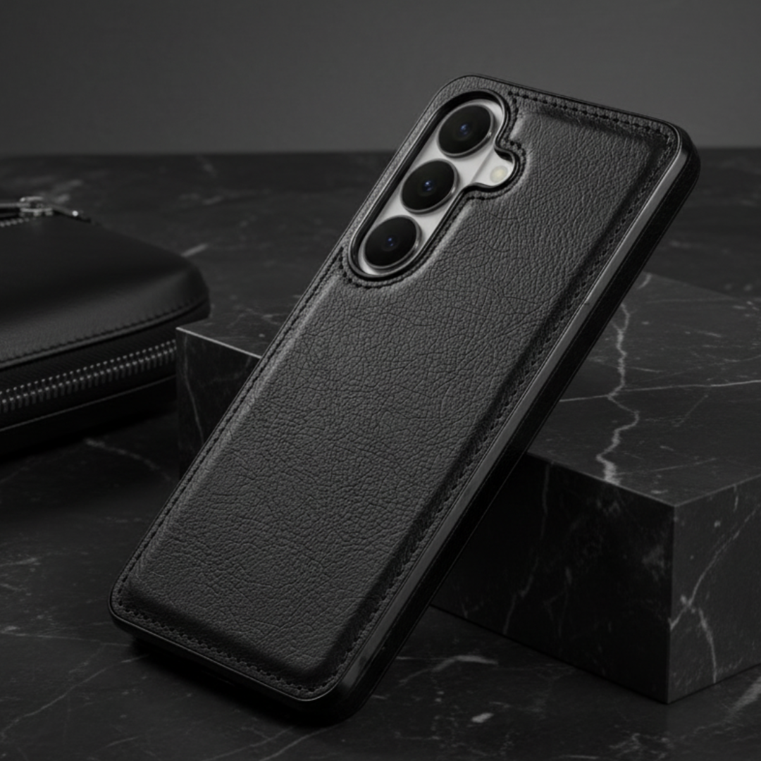 The Puloka Black Leather Case for Samsung S26 Plus is product by Goodsys priced at 31.39 GBP.