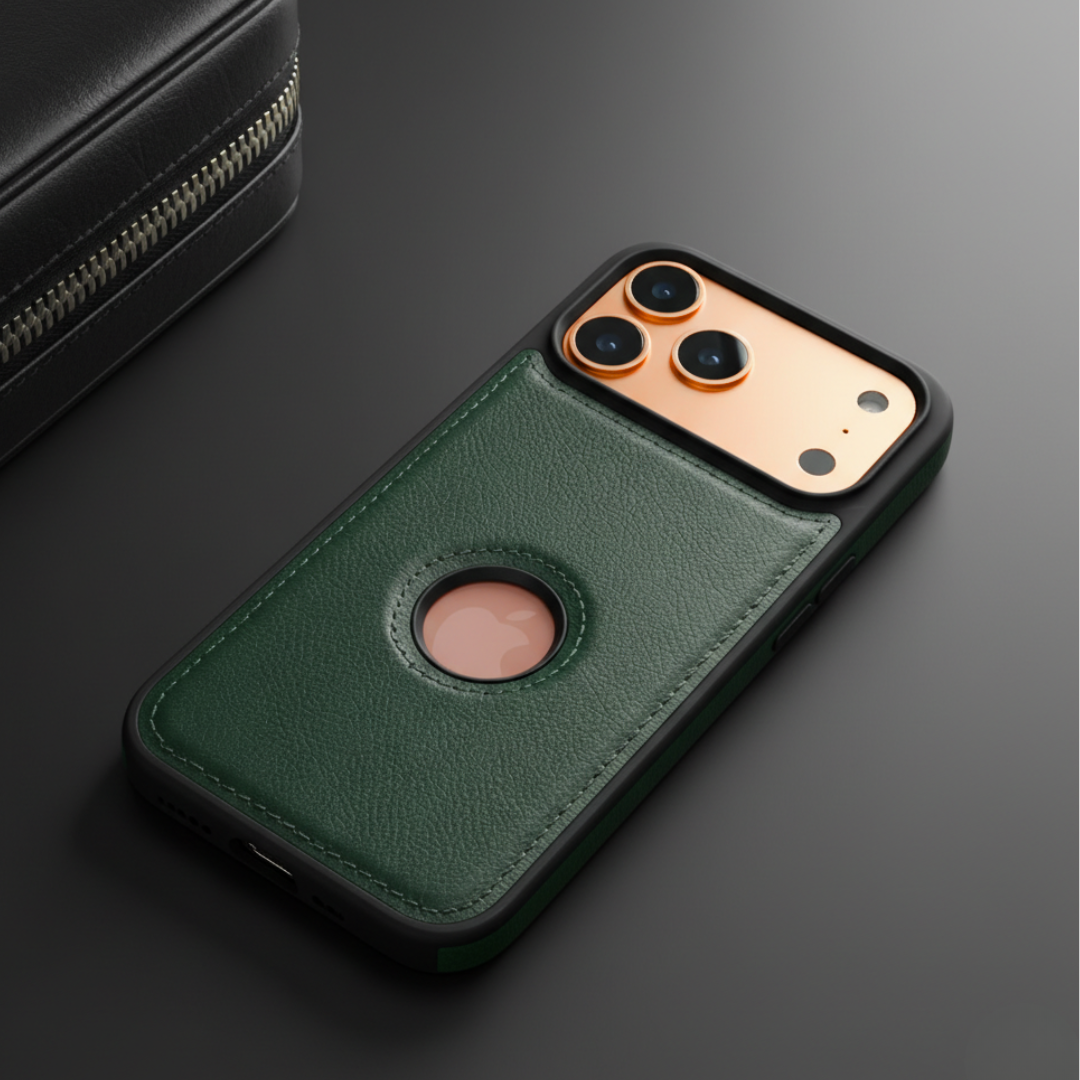 The Puloka Green Logo cut Leather silicone case for Apple iPhone 17 Pro Max is product by Goodsys priced at 31.39 GBP.