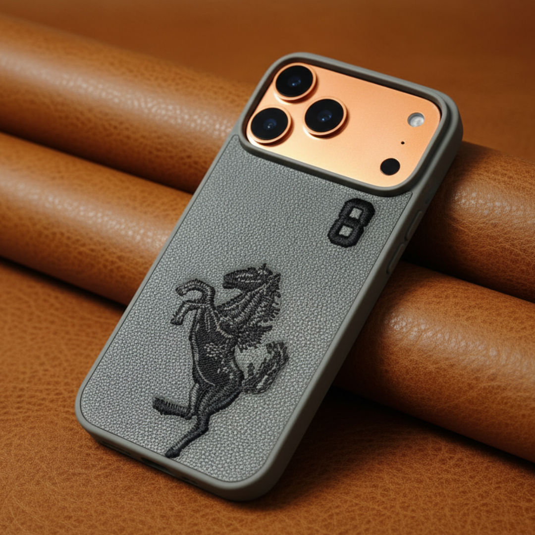 Grey Leather Horse No.8 OC Ornamented for Apple iphone 17 Pro Max is priced at 30.40 GBP.