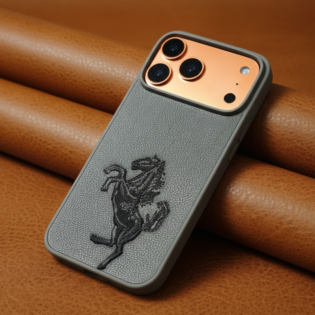 The Grey Leather Black Horse OC Ornamented for Apple iphone 17 Pro is product by Goodsys priced at 30.40 GBP.
